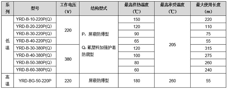 用途主要用于中、小型管线和容器的伴热、防冻、保温。最高伴热温度:90℃(低温型B);180℃(高温型BG)。