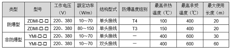 用途主要用于高温场合的管线、容器等的加热、伴热、保温。最高伴热温度:100℃(T4系列);150℃(T3系列),非防爆型400℃。
