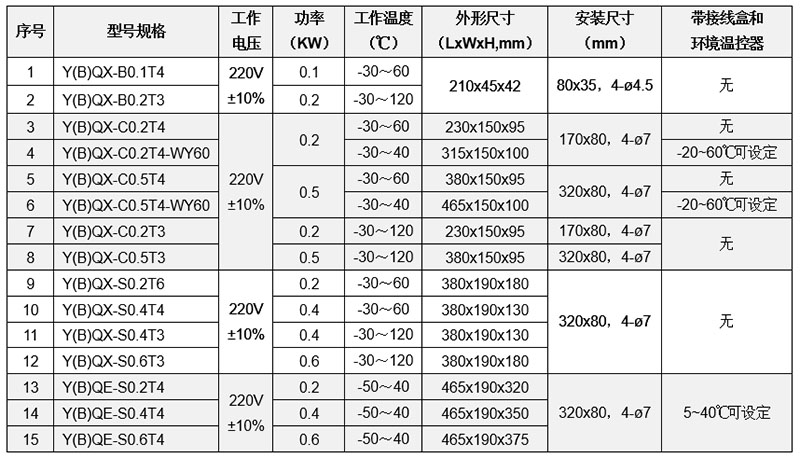 7)Y(B)QE型为耐低温型,最低可以用于-50℃环境。