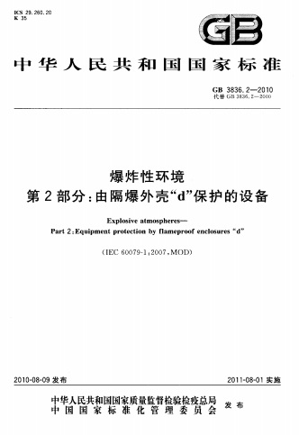 GB 3836.2-2010 爆炸性环境 第2部分:由隔爆外壳“d” 保护的设备
