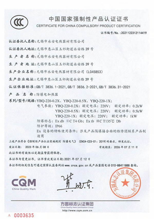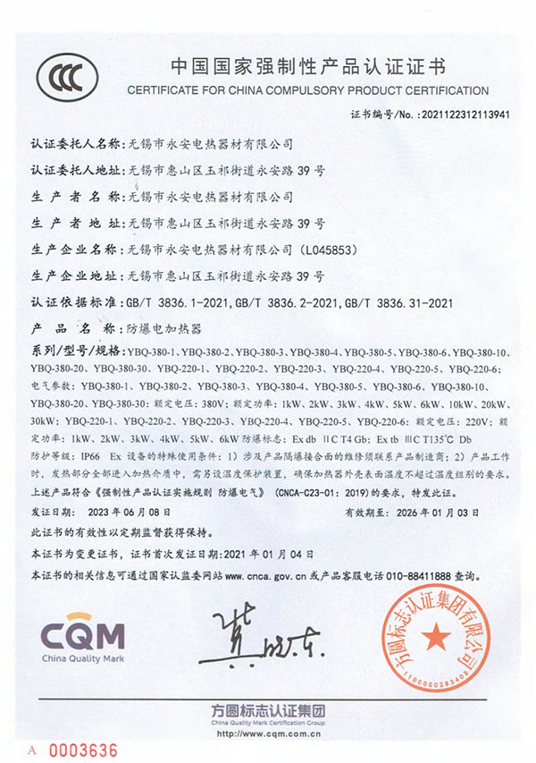 * YBQ-N-T3对流式防爆电加热器